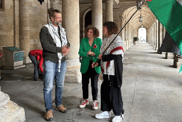 A alcaldesa Goretti Sanmartín agradece a Sandra Garrido e Manu López a dignidade de representar o pobo galego contra o xenocidio en Gaza