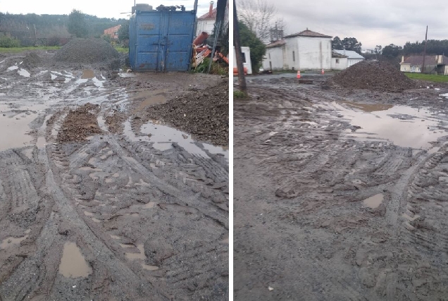Queixas en Vixoi polo barro e a ocupación do aparcadoiro xunto á igrexa durante unhas obras