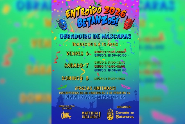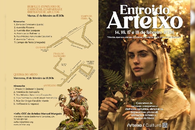 A programación inclúe actividades para a cativada o luns 16 de febreiro ás 16.30 h e o tradicional concurso de disfraces o sábado 21 ás 16.30 h, con desfile polas rúas da vila e actuación da charanga 'BB+'