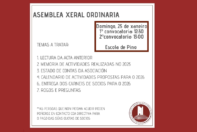 Será o martes, 3 de febreiro, na Casa da Cultura de Ferreira