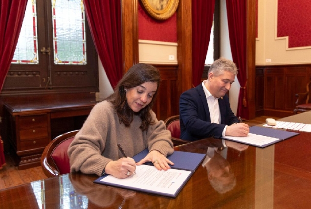 Inés Rey y el rector Ricardo Cao formalizan el traspaso del antiguo complejo de la Fábrica de Armas para acelerar el polo tecnológico, con tres nuevos edificios para la UDC