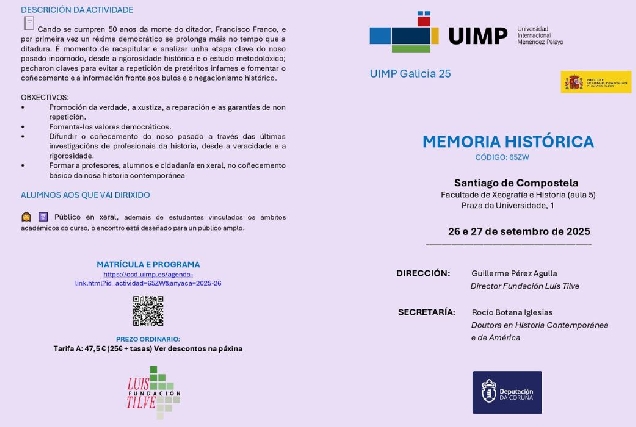 La Fundación Luis Tilve y la UIMP organizan en la Facultad de Geografía e Historia (USC) ponencias, mesa redonda y presentación de nuevas investigaciones