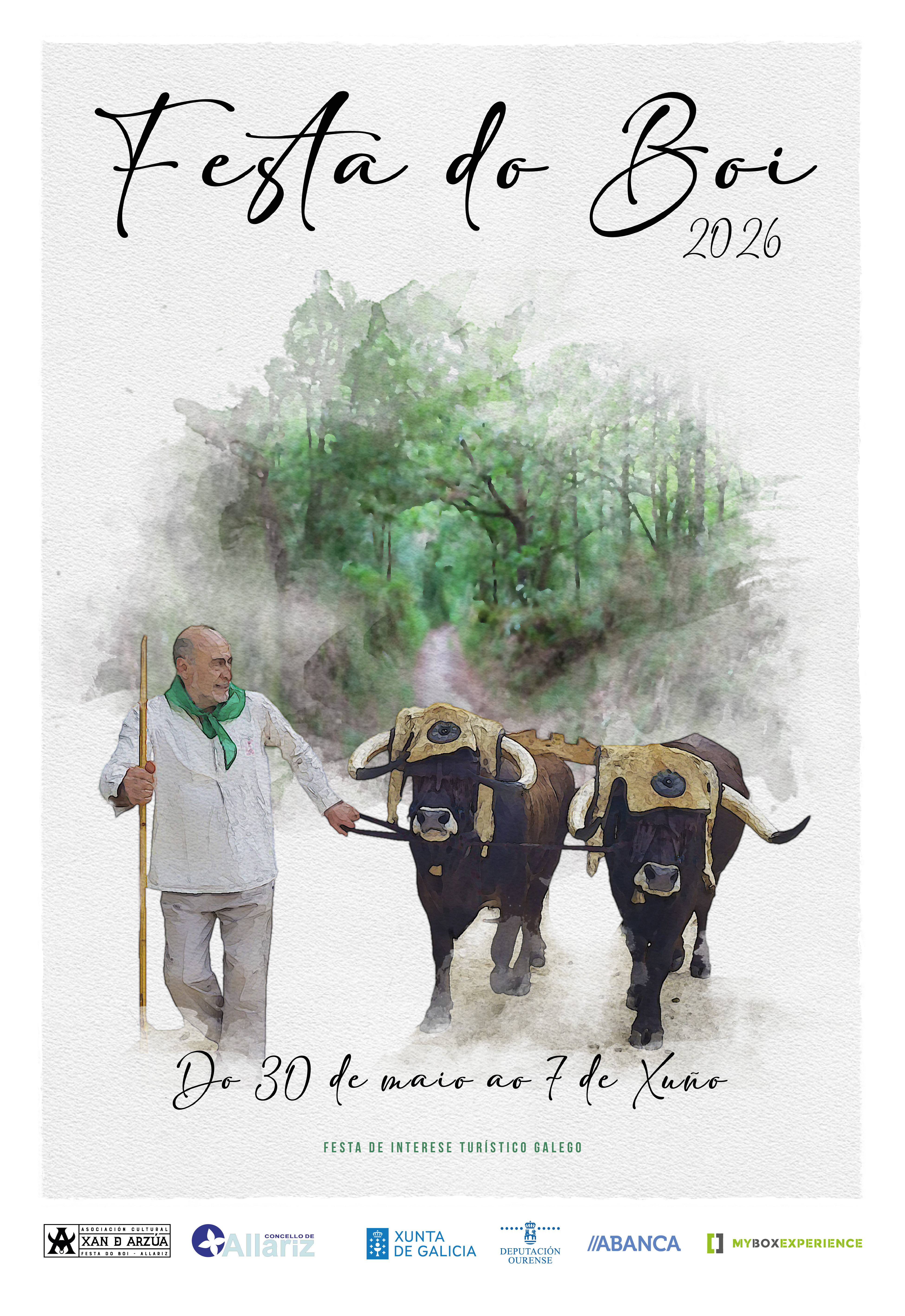 Allariz comeza a conta atrás para a celebración da Festa do Boi 2026, que se desenvolverá entre o 30 de maio e o 7 de xuño. A programación oficial, presentada hoxe pola Asociación Cultural Xan de Arzúa e o Concello de Allariz, inclúe 54 actividades repartidas ao longo de nove días e pon especial énfase na memoria de Paco, figura clave na recuperación desta tradición en 1983.