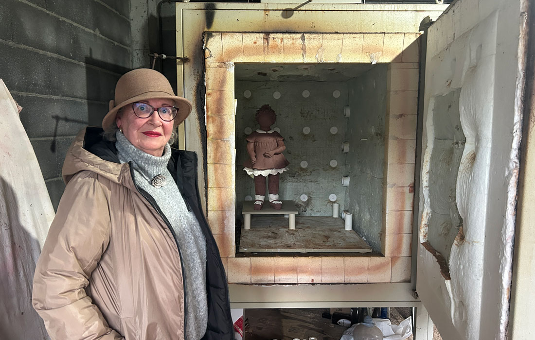 Primeiro, xorden palabras, conto unha historia. E, desas palabras, xorde un bosquexo, porque en escultura tes que buscar os equilibrios. Ademais, non é plano, é en tres dimensións e eu fágoa oca, só teñen un centímetro de parede. Traballo cun material brando que se ten que ir endurecendo e, por riba, empezo polos pés, en vez de pola cabeza, que é a que che dá as proporcións do corpo, porque somos 6 cabezas e media. E, se me equivoco, non vale a peza. Por iso, fago antes un estudo grande e logo realízoa. É un proceso que leva meses, xa que fago as pezas grandes por anacos, como un quebracabezas, porque non me caben no forno. Así, tamén as podo transportar para as exposicións, xa que, se fosen enteiras, pesarían moito.